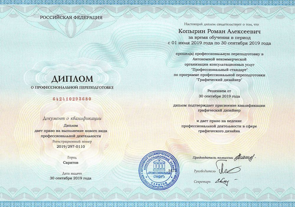 В результате обучения вы получаете диплом о профессиональной переподготовке установленного образца, который даёт право на ведение профессиональной деятельности.