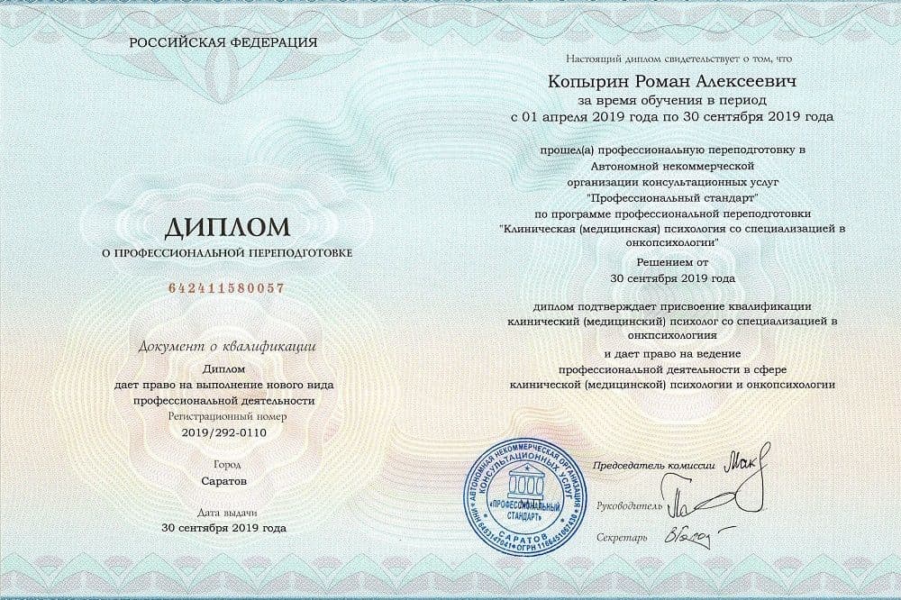 Название программы: Клиническая (медицинская) психология со специализацией в онкопсихологии.