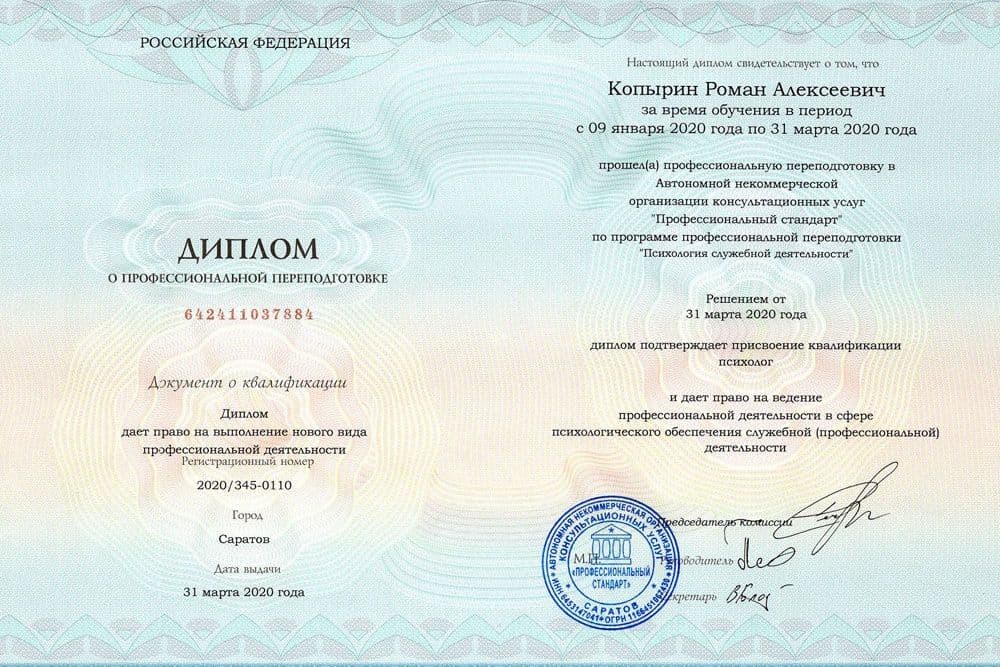 В результате обучения вы получаете диплом о профессиональной переподготовке установленного образца, который даёт право на ведение профессиональной деятельности.
