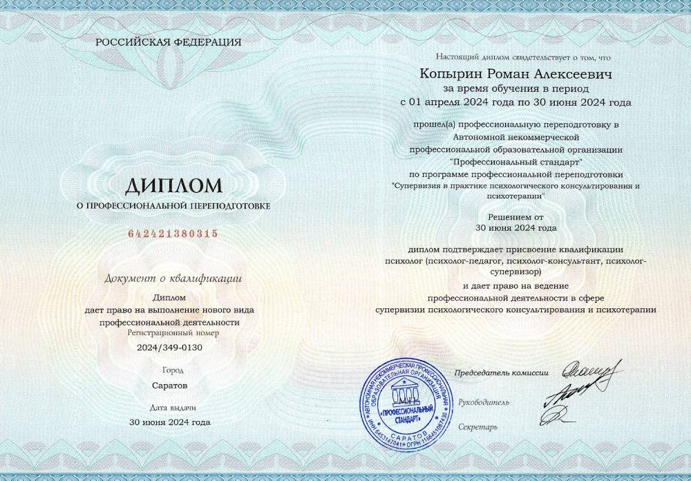 В результате обучения вы получаете диплом о профессиональной переподготовке установленного образца, который даёт право на ведение профессиональной деятельности.