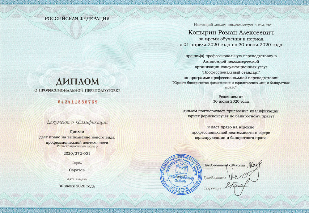 Название программы: Юрист: банкротство физических и юридических лиц и банкротное право.