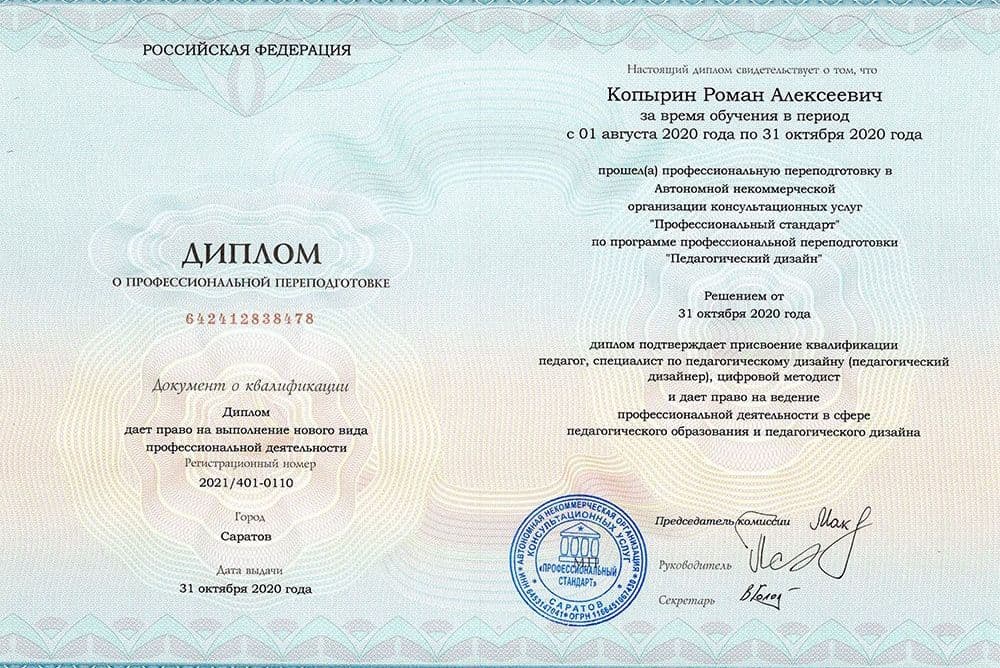Название программы: Педагогический дизайнер.