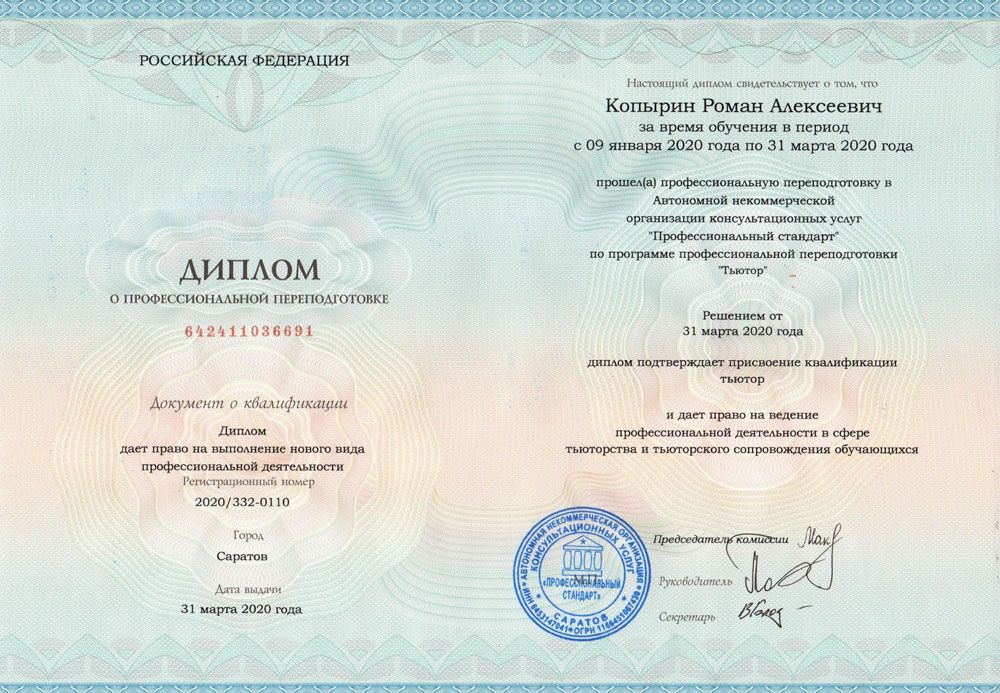 В результате обучения вы получаете диплом о профессиональной переподготовке установленного образца, который даёт право на ведение профессиональной деятельности.