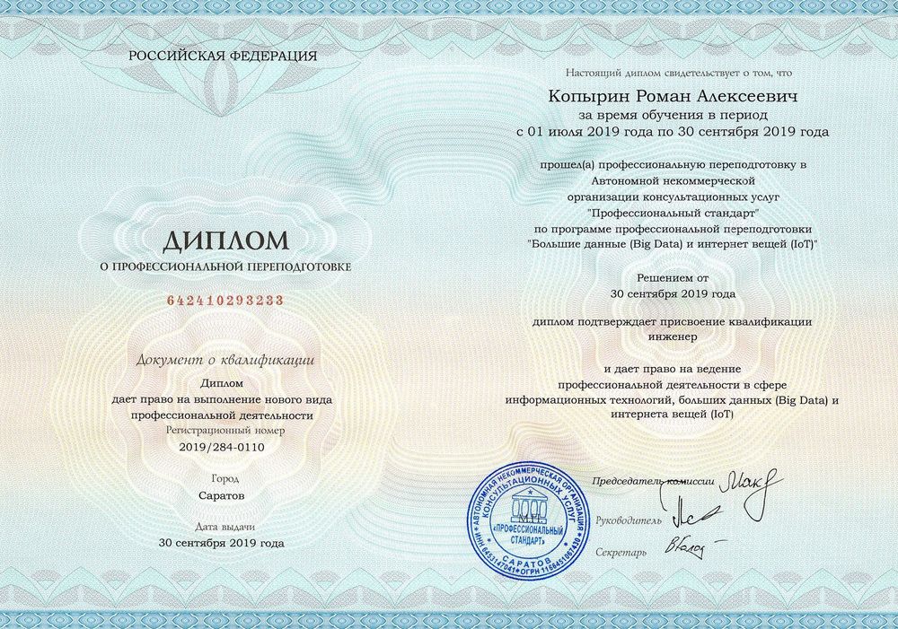 В результате обучения вы получаете диплом о профессиональной переподготовке установленного образца, который даёт право на ведение профессиональной деятельности.