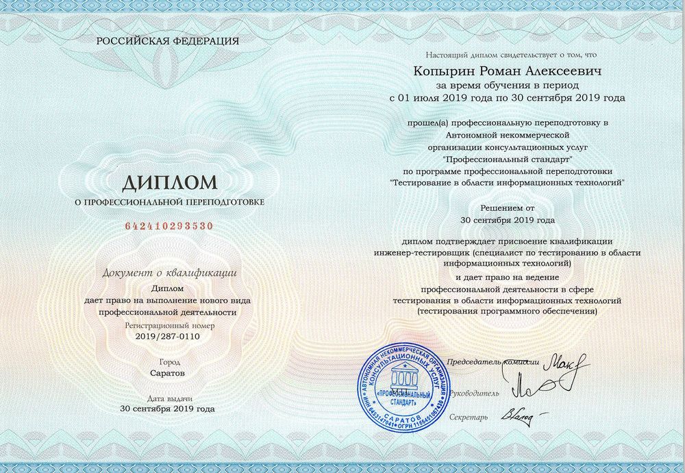 Требования: наличие высшего или среднего профессионального образования.