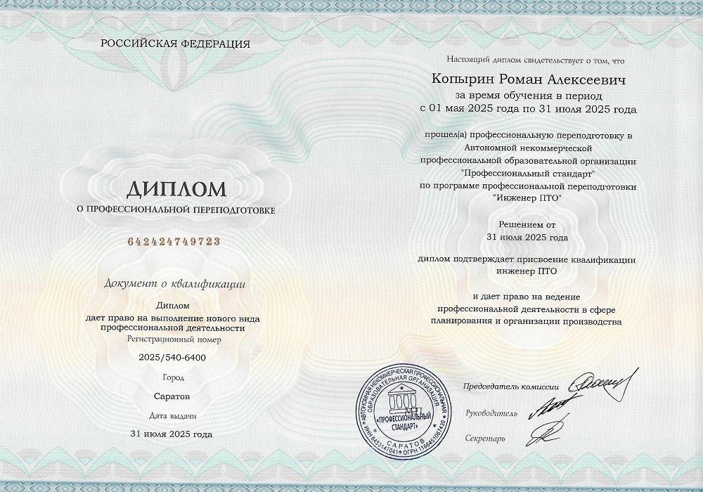 В результате обучения вы получаете диплом о профессиональной переподготовке установленного образца, который даёт право на ведение профессиональной деятельности.