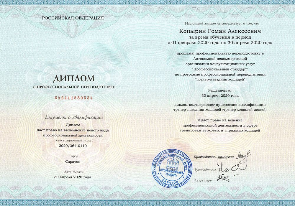 В результате обучения вы получаете диплом о профессиональной переподготовке установленного образца, который даёт право на ведение профессиональной деятельности.